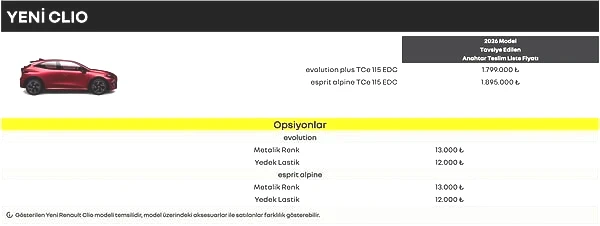 Türkiye pazarına adım atan yeni Clio’nun başlangıç fiyatı 1.799.000 TL olarak belirlenmiş durumda.